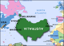After what witnesses described as an all night blinder during which it kept droning on about how it was always being bloody ignored by the whole bloody world and would bloody well stand to do something about it, Australia this morning woke up to find itself in the middle of the North Atlantic.