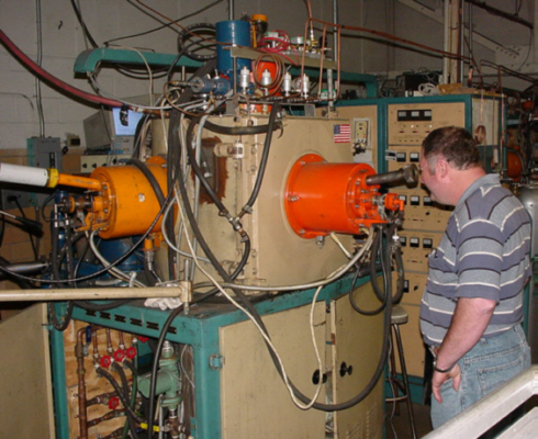 Here is a pic of Grumble watching the charging of a plasma field used for standard Titanium Nitride coating. The company is doing some interesting development of ion beam implantation as time and cash flow permits.
