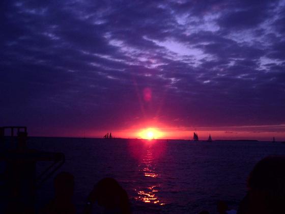 I could kiss you Miles&Cassidy! Ohhhhhhhh I miss the sunsets of Mallory Square (or any sunset in the Keys for that matter)! Before we moved back north we had to do a tourist run of the Keys and so we did the sunset/champagne cruise on The Western Union (a gorgeous teakwood sailing ship) once! As far as I remember (cause I did drink alotta champagne...*hick*) it was exactly like your pic! They say if you listen closely....you can hear the sizzle as it sets! Thanks for the memories! *smooch*