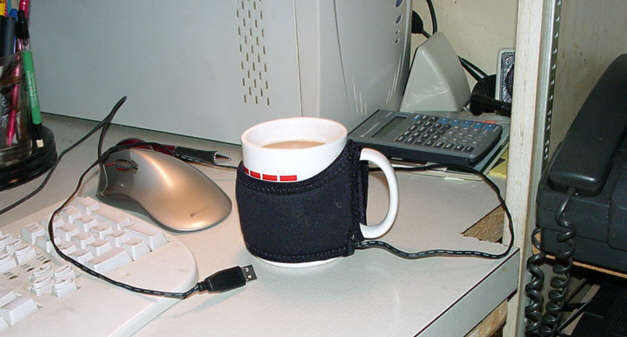 A sweet lady who knows my addictions too well (besides that one :lust: ) gave me a surprise with a coffee cup heater that hooks into my puter with a USB plug.