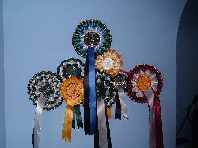 Anyhow, she's been in one mini dressage comp, one showing comp and one jumping comp.... and managed all these rosettes!