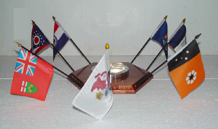 Good question. Not sure how many different countries, states and provinces there are represented at Pixies, but PF's design can accomodate all that are likely to attend any of these get togethers. And, while PF's being modest ... the new wood base needed to handle the state/provincial flags is beautiful and he's to be congratulated on a job VERY, VERY, VERY WELL DONE!