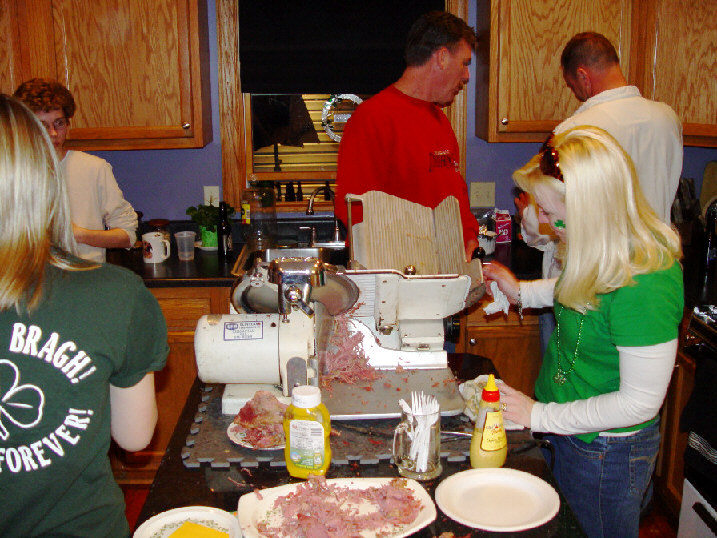 Then to breakfast with green scrambled eggs, soda bread and the first taste of the 71 pounds of corned beef for this years open house.