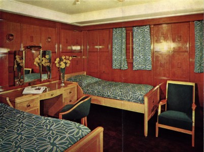 The little sign on the door reads 12. "This is it Sir." Says the porter as he opens the door. While waiting for porter to get his things into the cabin he sees that sad lady again. She is in arm with a porter and heading towards him. Removes his hat and smiles to the lady as he goes into his cabin. As he does so a very large and jolly English gent says to a lady with him. "I say, isn't he that American fighter ace chap? er.. Whatshisname thingy??" His wife looks confused. "I have no idea, I am sure dear."