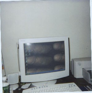 The quality of the pictures themselves is pretty bad. I used an instant camera and scanned them. Not the best way but it worked. You can see what terrific wallpaper EX makes. With him on my screen I doubt I'll do much of anything all day but sit in front of my comp.