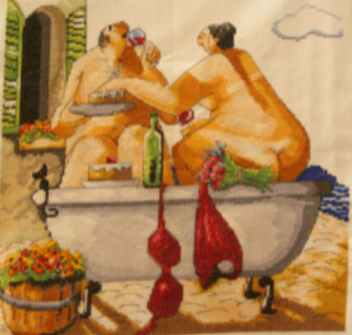 My daughter did a cross-stitch for our bathroom.