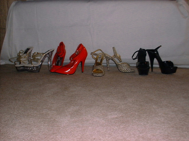 The shoes do not fit ME!!! LOL, I bought them for someone to model in for photos. I'm willing to give them away to soeone who would be willing to model them as well  they are all very much like new. Never worn out doors. and only for photo shoot. Each pair was worn only twice. Would love to find someone local in Tenness to have them and arrange a photo shoot with them...