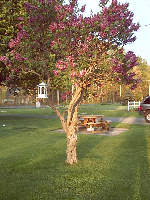 But I am so in love with this tree! It has to be at least 100 years old..........Lilacs are usually bushes and this tree is so knarly and has a charater all it's own. The blossoms are dark and oh so fragrant!
