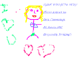 Dick still thinking of the events that happend earlier, sat down and drew up a poster and started making copies of it to plaster all over the campus of the school. "I have to find her, she is the love of my life and the only woman for me." as he said with a big smile on his face.