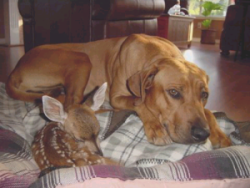 My sister sent me these pics in email the other day. The story said that the momma was killed by a car and a couple adopted the baby till it was strong enough to go to a better home. Seems "momma's" come in many forms.