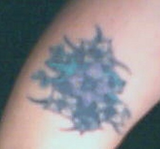 Most of mine are too old to post..Lost the color..Jack Daniels label on back of my left arm is still ok though..Flaming skull, in spider web mostly faded now.Red and yellow barely show up..My ex had a great one though..Great, because of course,it was my idea,lol..Curved lightning bolts runinng down her pelvic bone,to right near the top of her cooch..In the middle was written Splippery When Wet