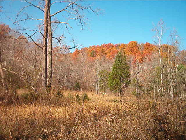 I know this is kind of mute -- but just ran accross it today -- haven't been paying attention again -- anyway, while hunting, I notice something that had never really caught my eye before, change in weather from top land to bottom land created a very interesting shot of fall -- thought it was kind of strange until I thought about it -- about a 9-1100 ft. difference in elivation really made a difference -- anyway -- thought I would share this also