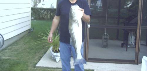 And some info for the anglers.......36" striped bass (weight unknown), caught in the breakwater (where the ocean meets the bay) in Cape May, N.J. on November 1, 2003. We've gotten larger ones....but it was a slow day!