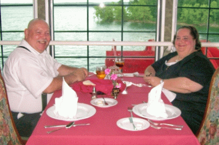 This is me and Mr. S taken on The Branson Belle, a local riverboat that is a floating restaurant and theater. We took a dinner cruise for our 35th wedding anniversary in June of this year.
