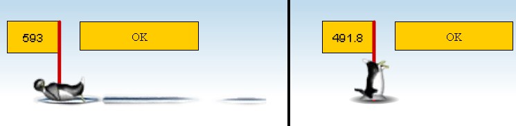 well... 593 on the sliding penguin and 491.8 for the face plant penguin...