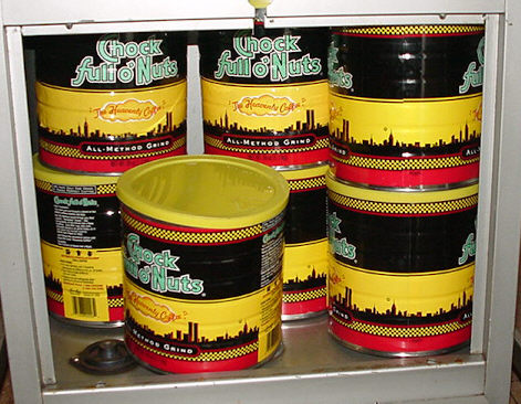 I keep at least three extra cans of whole coffee beans {french and espresso roast} in the garage freezer.Plus two in the kitchen ground and ready.Doesn't look like I'll run out of coffee to soon.I can't imagine looking around for coffee and only finding an envelope of Sanka left over from a motel visit 5 years ago.YUCK!!!!!
