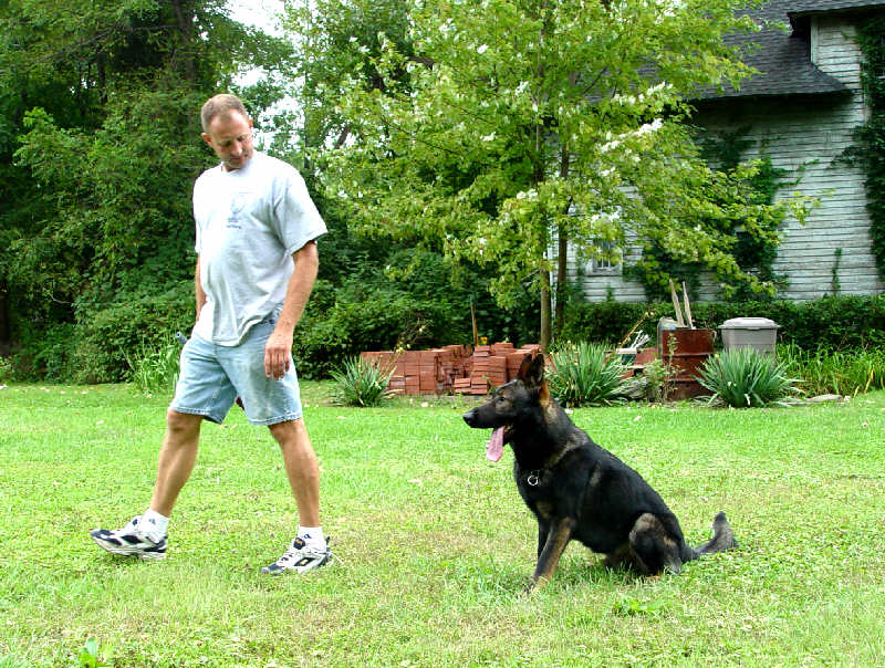 "Erok" is the name of the 20 month old 'certified' dog that actually came from Germany the previous week. An additional $1,000 went away for the discipline certification, but it is essential for the cross training of the four specialties he will have. Particularly between 'track' and 'apprehend'.