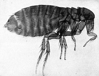 Here's our picture of Freddie, our pet flea. We'd had him for .. oh, an hour or so before that dreadful accident with the bug spray. We had run out of deodorizer and wondered if this pretty yellow can with a red lid would work ... well, little did we realize what that stuff would do to Freddie.