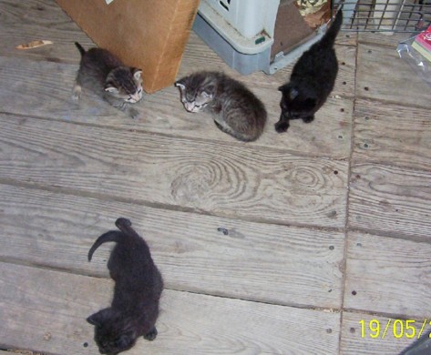 We've recently added a family of kittens to our menagerie. The mother is a neighborhood stray that adopted us last year. But for some reason, Mama cat disappeared when they were 8 weeks old. I don't know why, but she was a very good mother to the kittens and never would have left them unless she was either "adopted" by a family who didn't know she had a litter to care for, or if she met with an untimely end.