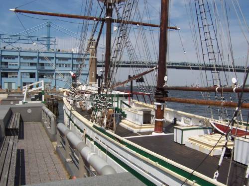 It's just a "wee" way over the Deleware river to N.J., and the ship you see is now a maritime museum just across from Penn's Landing.