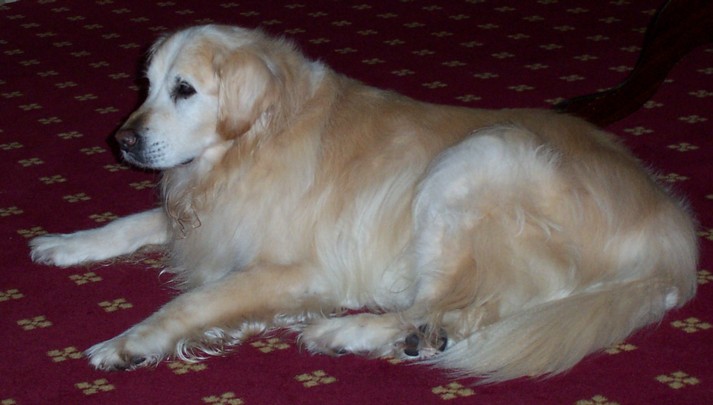 My beautiful Golden Retriever - Champers. Sadly, he's getting on a bit. Really bad arthritis in his hips make it difficult for him to go for walks - but HE LOVES his walks!!! It takes him about half an hour for him to limp around the block, but he LOVES it!! lol
