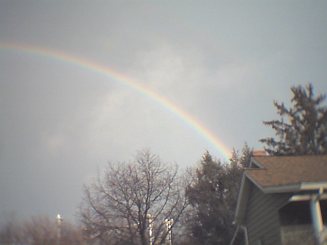 The First 2 look very good together. the first one is it coming out over my house. and the second is it connecting and going down over my neighbors. Then the rest are various pictures.. in a few you can actually see that there is more than one Rainbow.. =) What a day indeed