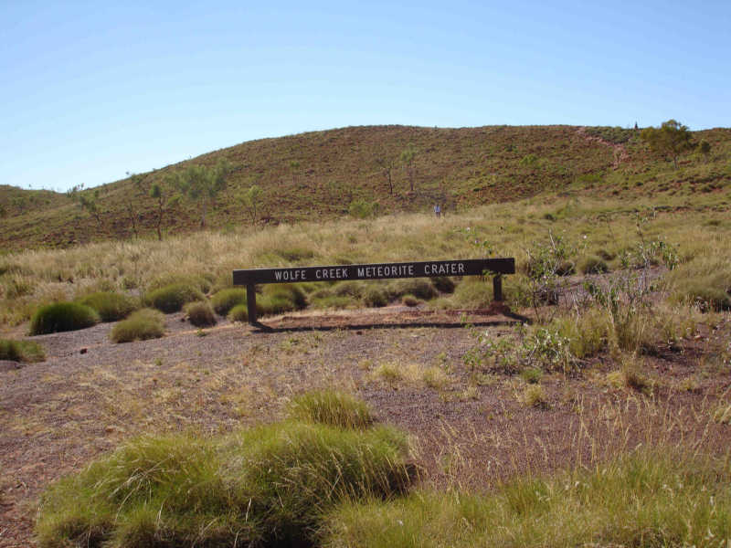 The crater was about 20km off the highway on a rough-graded road that was mostly better than the main road. The only really tough part was crossing Wolf Creek's dry bed, littered with football and canteloupe sized rocks. No way was a 2 wheel drive doing that (I have an all-wheel drive).