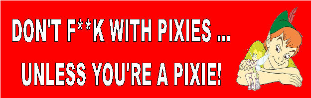 Lil, there is a difference between "fucking Pixies" and "fucking WITH Pixies". Maybe the slogan should be "Don't fuck with Pixies unless you want to be fucked back"?