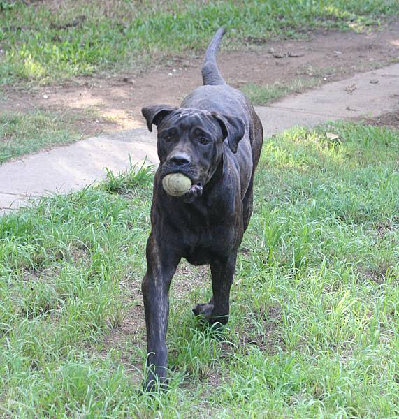(It is a cute dog ... and smart, too. Already it's teaching Alasse how to play ball.  )