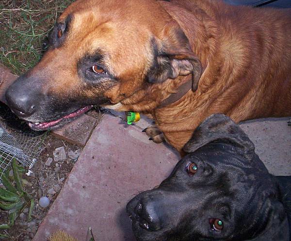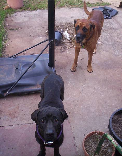 She was dominant dog at the old place and Scoob was obviously dominant here...so we're having a few growl and snarling matches
