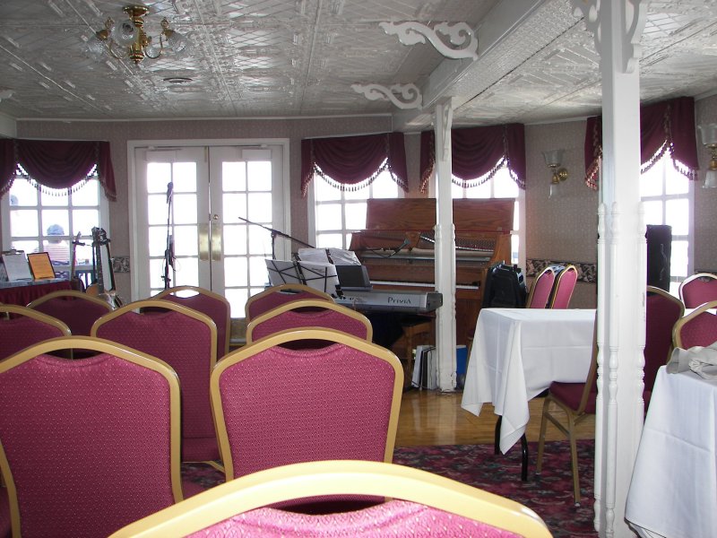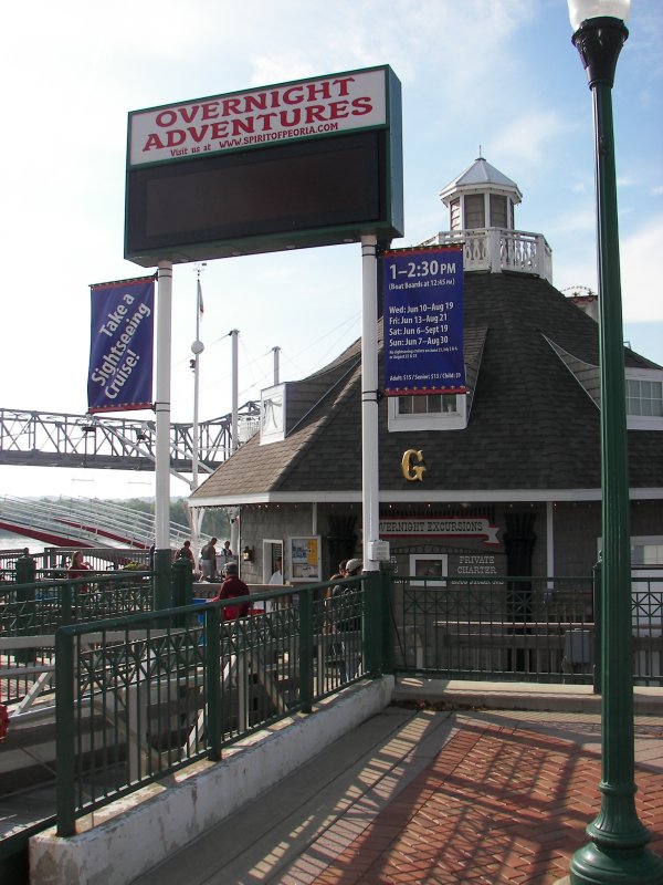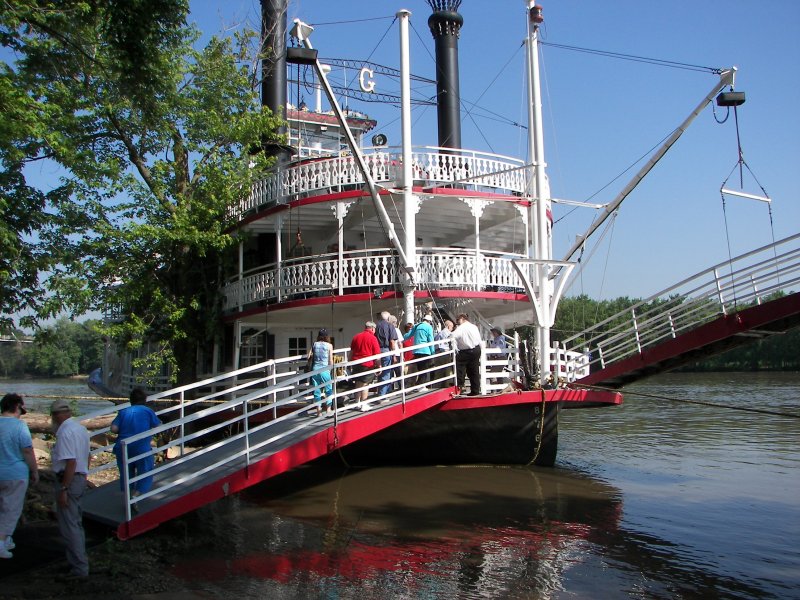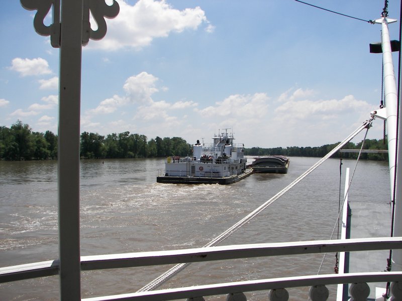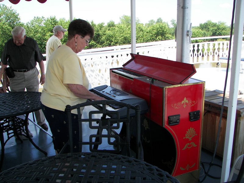 First pic of us all getting back on board The Spirit of Peoria yesterday morning. Next, our piano player playing the calliope, The ladies in the audience participated in one song with the guys all whooping and a hollerin' to cheer them on; then, our story teller and river historian (outstanding). Finally, we caught up with a tow boat pushing 12 barges and passed it.