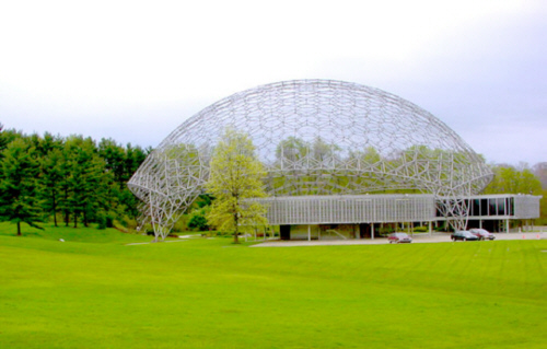 Our private guide was willing to snap a pic of us at one of the legs of 103 ft. high geodesic dome designed by R. Buckminster Fuller. It really is a symbol of man’s mastery of his metal resources.