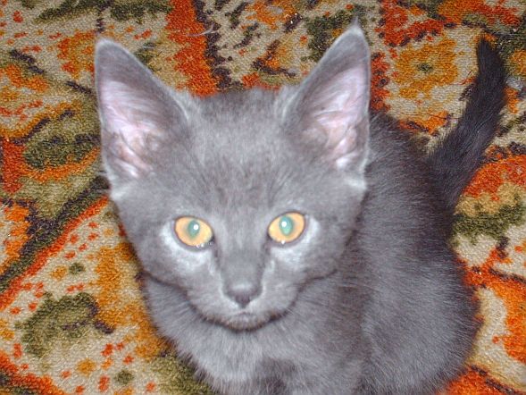Anyway, I did keep one kitten from each litter. From the first litter I kept the little all gray one, Lil says she's a Russian Blue. Her name is Dominique.
