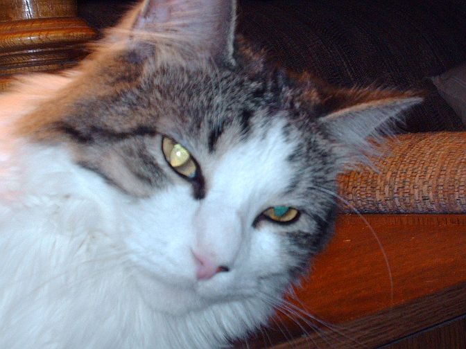 Here are a couple of recent ones of the kitties. I swear in the first one that Lou is saying to me, "Nobody expects the Spanish Inquisition!" Ok, perhaps I've watched too much Monty Python over the years.