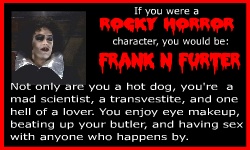 Frank-n-Furter.....figures.....LOL....that was the part I did the longest.......when I used to do the show years and years ago. Though I do have to say it was a blast to do it.