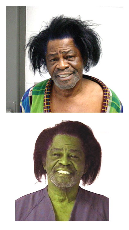 Good call, Cheyanne! A person I know with too much time on his hands PhotoShopped the two mug shots: