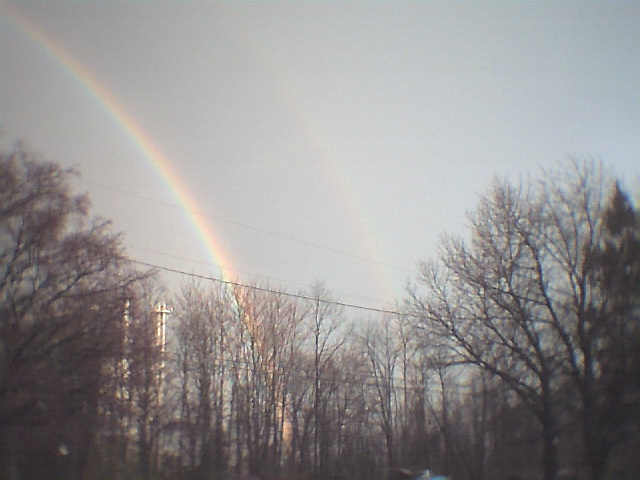 The First 2 look very good together. the first one is it coming out over my house. and the second is it connecting and going down over my neighbors. Then the rest are various pictures.. in a few you can actually see that there is more than one Rainbow.. =) What a day indeed