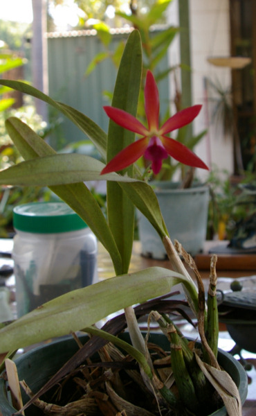 Here in the tropics, you just put the pots where they'll survive, and in their own good time they flower. I won't put up a shadecloth tent and coddle them like some do, they just travel at their own pace (like me).