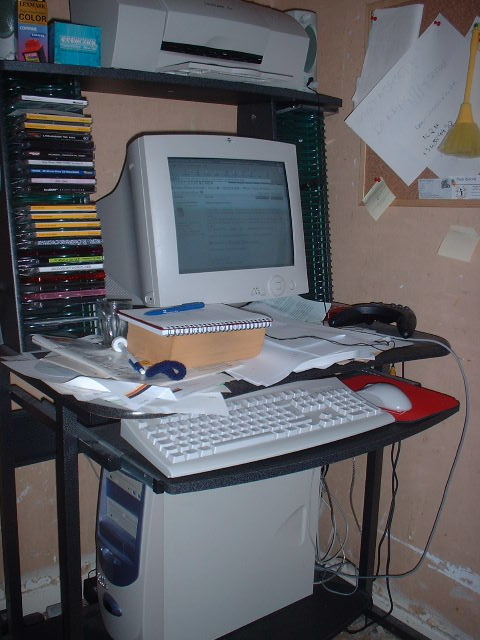 Here's my computer/disaster area (no laughing now!!)